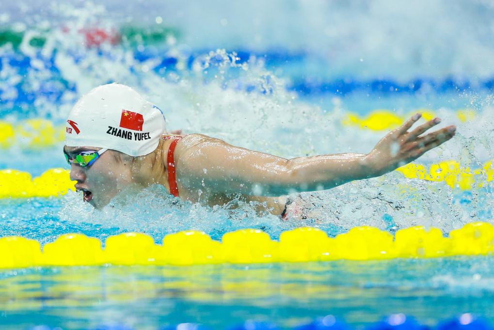 图为张雨霏在比赛中。