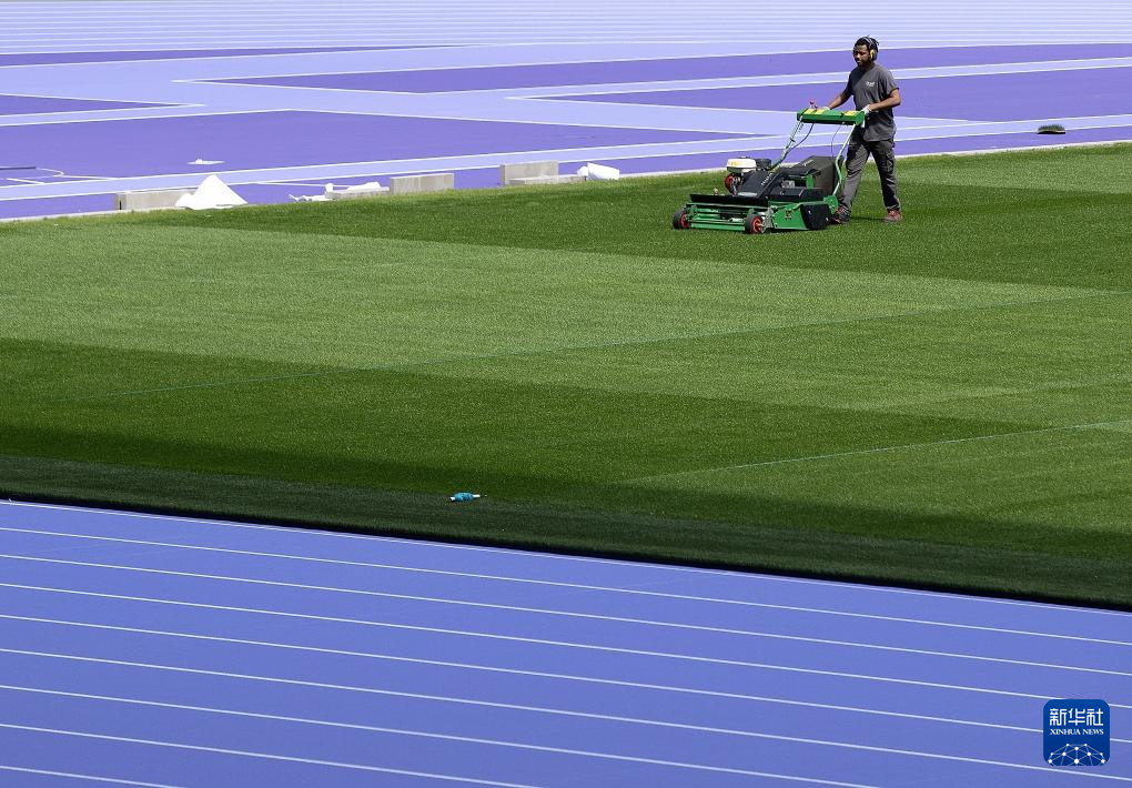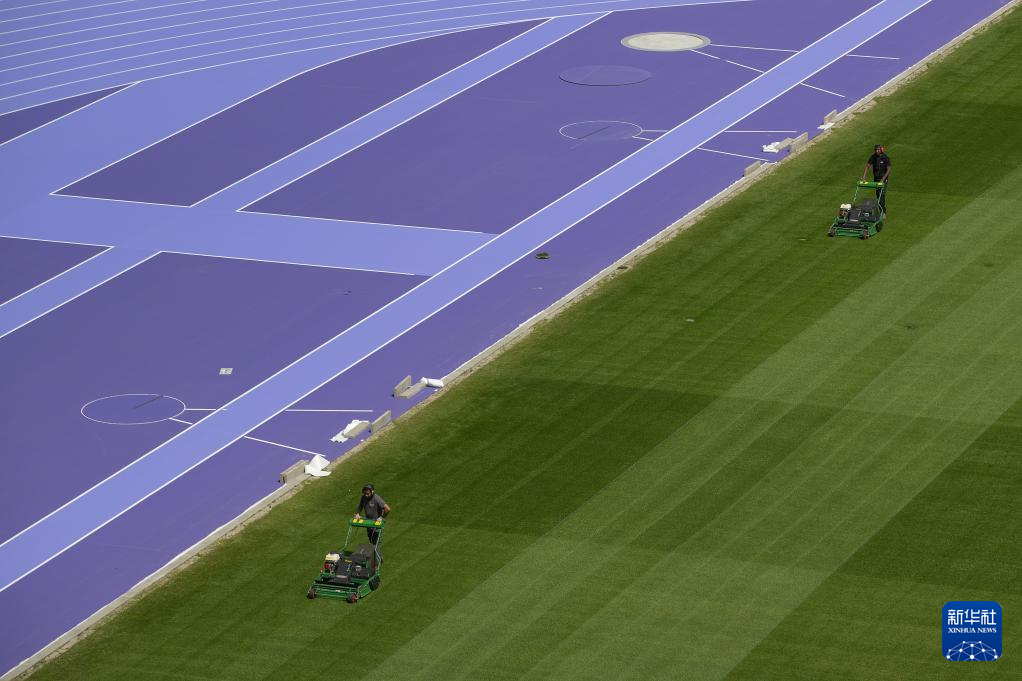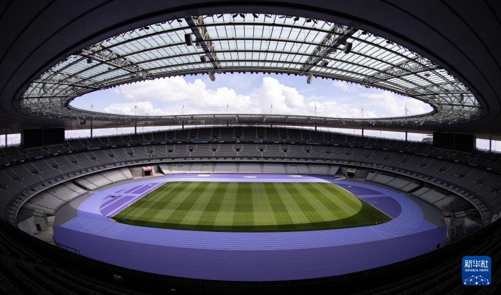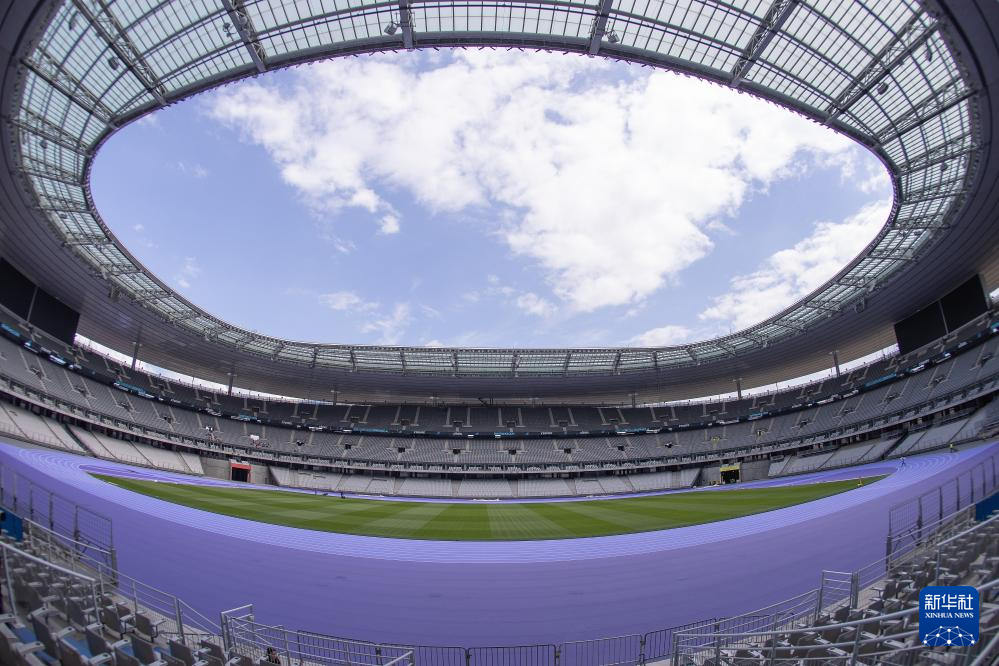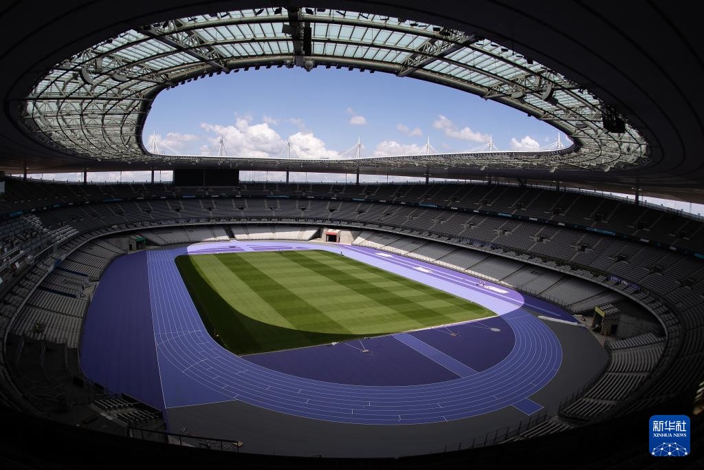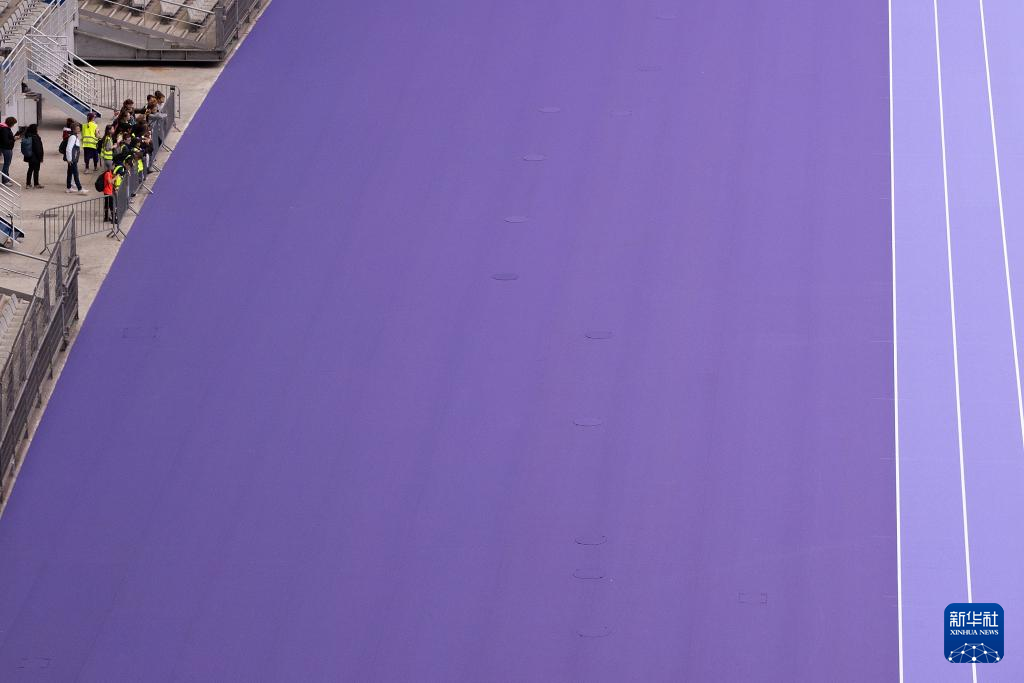 日前,巴黎北部的法兰西体育场铺设深浅两种紫色的跑道用于奥运会田径项目比赛,这也是奥运会田径赛场首次出现紫色跑道。
