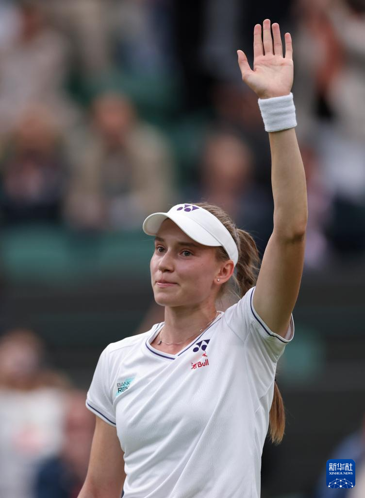 7月6日,莱巴金娜获胜后庆祝。新华社记者 韩岩 摄