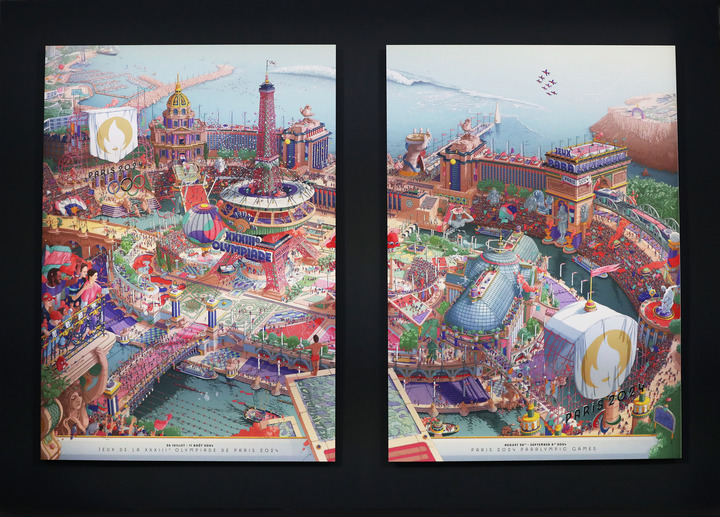 “2023年圣诞节前后,我在创作巴黎奥运会和残奥会的官方海报时无意中颠倒了图画的颜色,创造出了一种带有霓虹灯色调的夜间氛围。受到这一处理失误的启发,我开始创作海报的新版本,一次改变一种颜色,从而揭示了图画中的一些意想不到的秘密,并向巴黎美丽的夜晚致敬。”插画师乌戈·加托尼说。