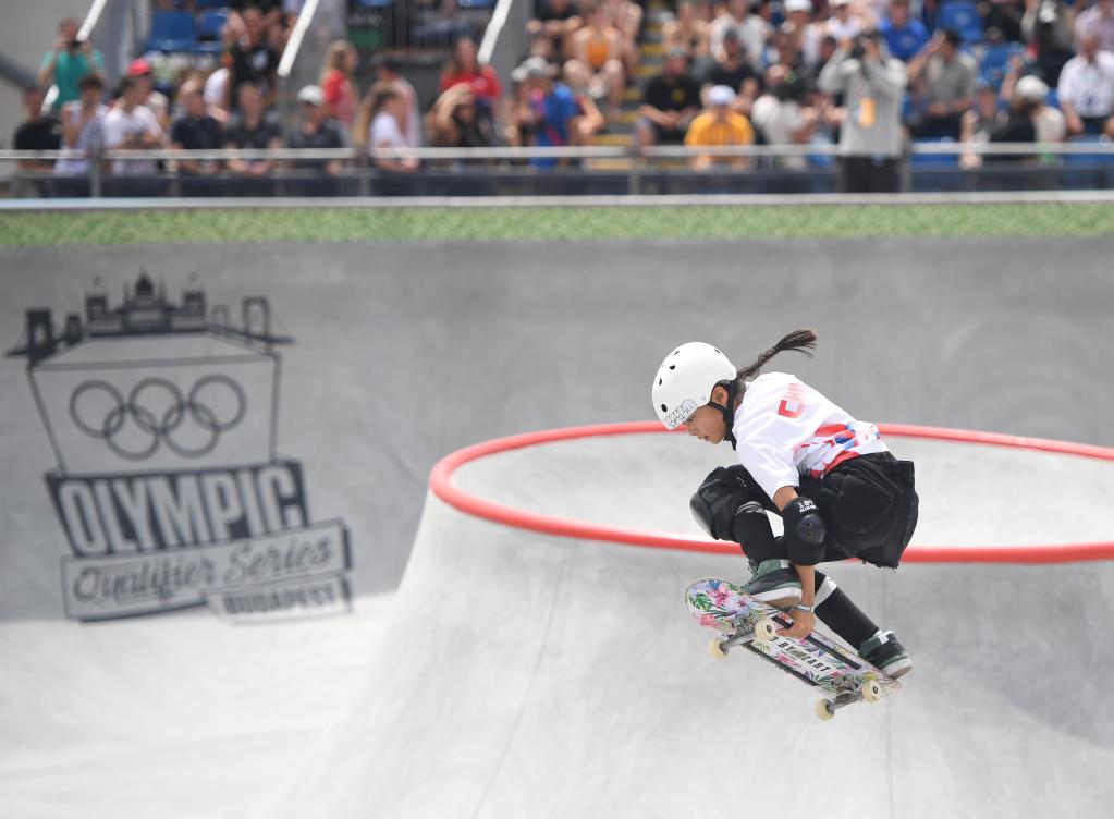 6月20日,郑好好在巴黎奥运会资格系列赛布达佩斯站滑板女子碗池预赛中。新华社记者 贺灿铃 摄