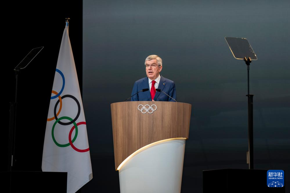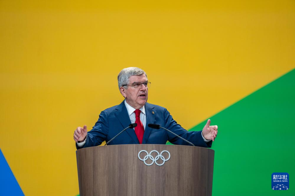 7月23日,国际奥委会主席巴赫在会上致辞。新华社记者 孙非 摄
