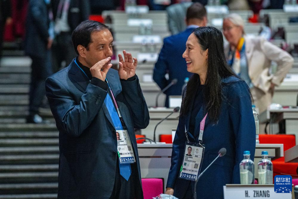 7月23日,国际奥委会委员张虹(右)在会议开始前。新华社记者 孙非 摄
