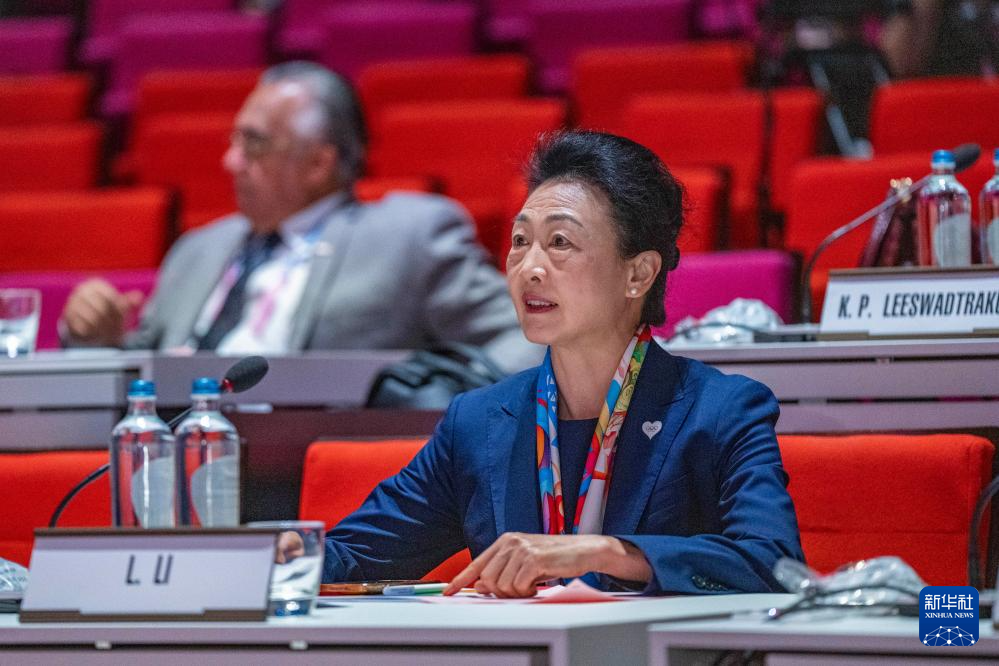 7月23日,国际奥委会委员、中国奥委会副主席李玲蔚在会上。新华社记者 孙非 摄