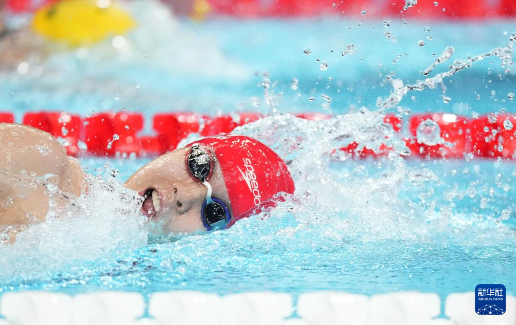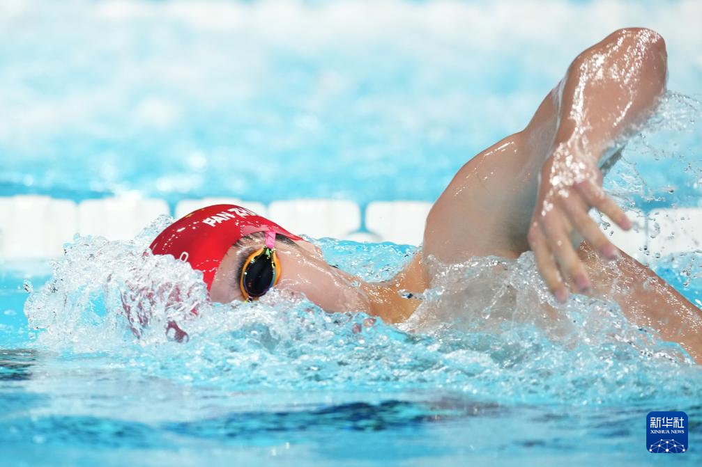 7月28日,中国选手潘展乐在男子200米自由泳预赛中。他无缘半决赛。新华社记者 薛宇舸 摄