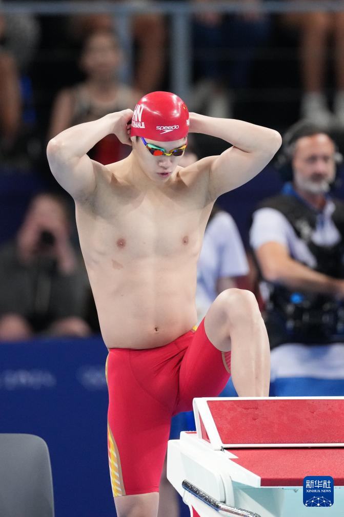 7月28日,中国选手潘展乐在男子200米自由泳预赛前。他无缘半决赛。新华社记者 薛宇舸 摄