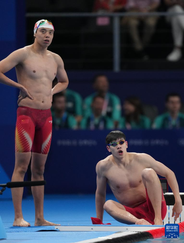 7月28日,中国选手潘展乐(右)、季新杰在男子200米自由泳预赛后。他们均无缘半决赛。新华社记者 薛宇舸 摄