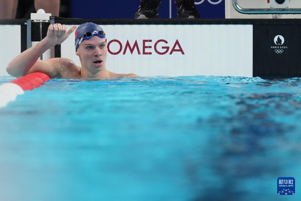 7月28日,法国选手莱昂·马尔尚在男子400米个人混合泳预赛后。他以第一名的成绩晋级决赛。新华社记者 薛宇舸 摄