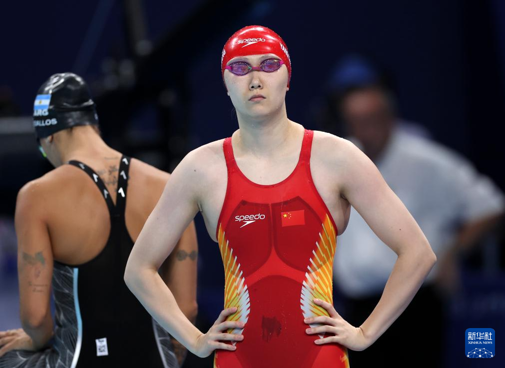 7月28日,中国选手杨畅在女子100米蛙泳预赛前。新华社记者 雒圆 摄