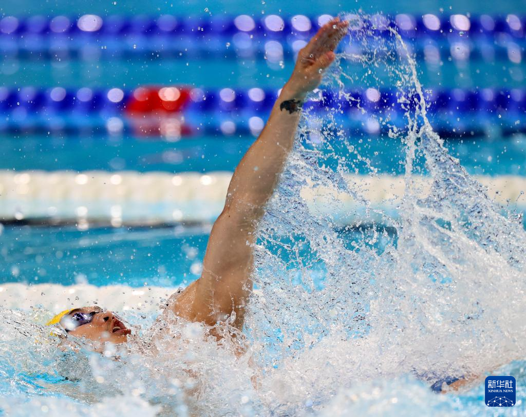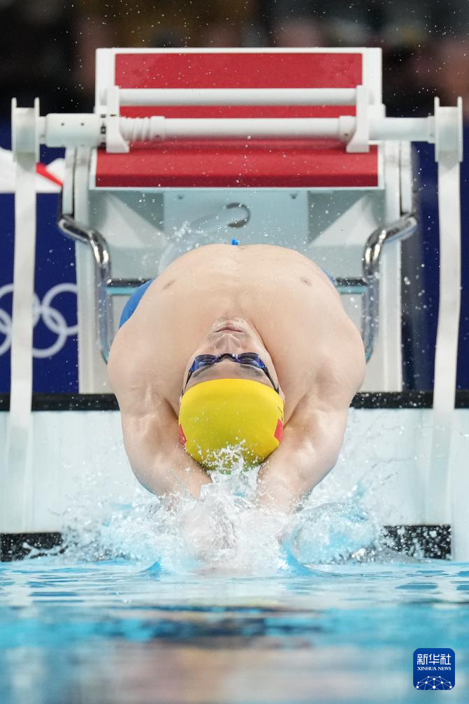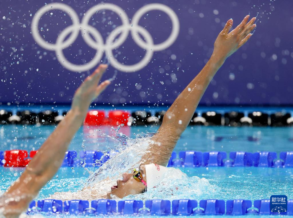 7月28日,中国选手徐嘉余在男子100米仰泳预赛中。最终,他位列第六,晋级半决赛。新华社记者 雒圆 摄