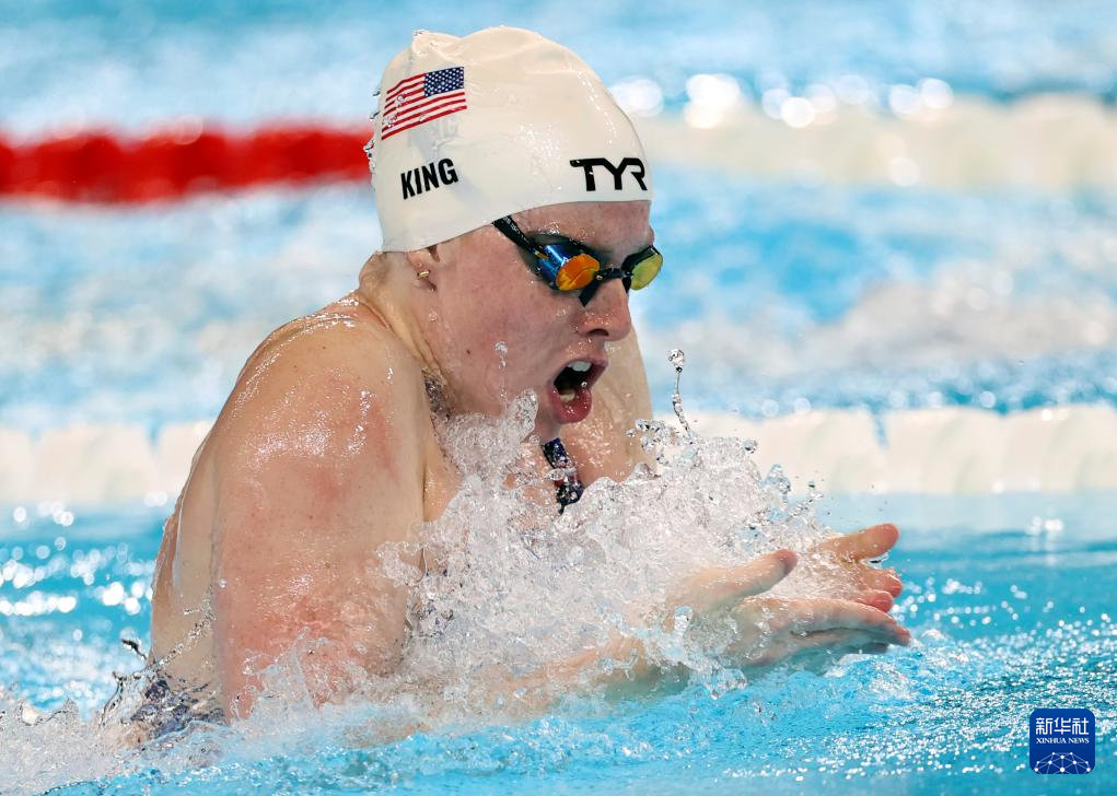 7月28日,美国选手莉莉·金在女子100米蛙泳预赛中。最终,她位列第五,晋级半决赛。新华社记者 雒圆 摄
