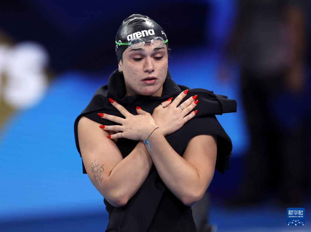 7月28日,意大利选手莉萨·安焦利尼在女子100米蛙泳预赛前。最终,她位列第九,晋级半决赛。新华社记者 雒圆 摄