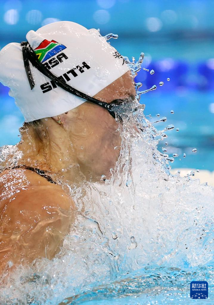 7月28日,南非选手塔季扬娜·史密斯在女子100米蛙泳预赛中。最终,她位列第一,晋级半决赛。新华社记者 雒圆 摄