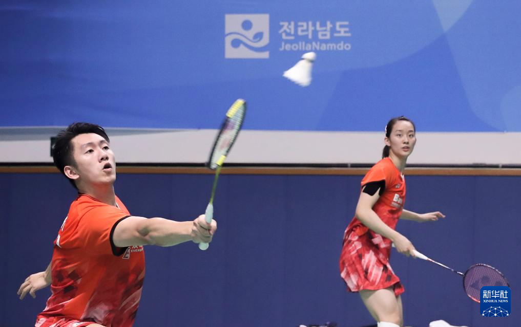 当日,在韩国木浦市举行的2024年韩国羽毛球公开赛混双第二轮比赛中,中国选手程星/张驰2比1战胜队友蒋振邦/魏雅欣,晋级八强。