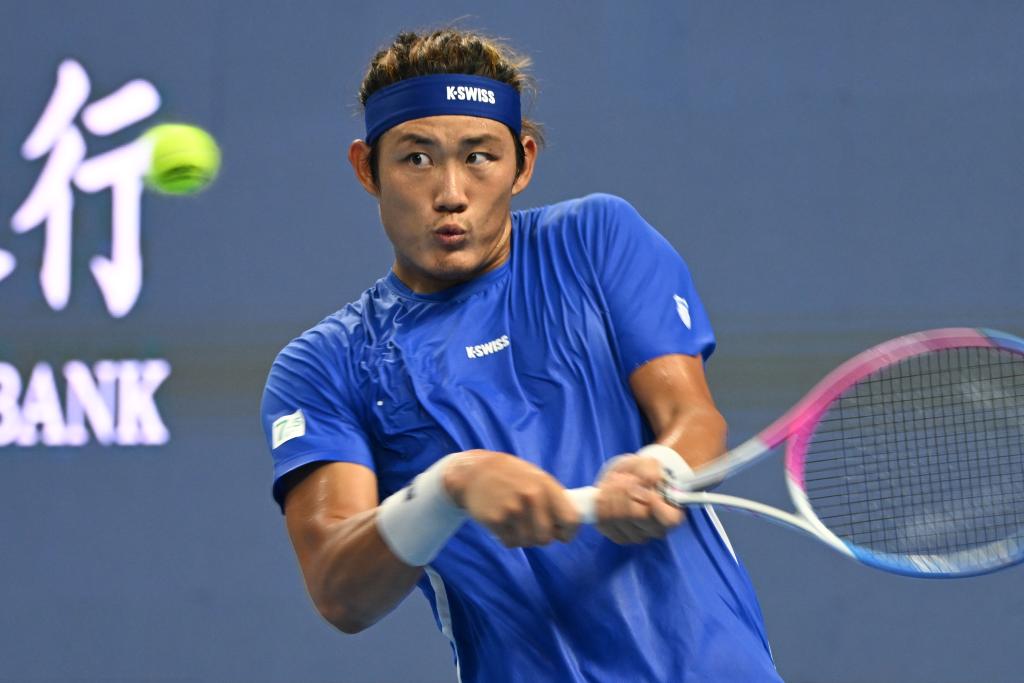 9月27日,张之臻在2024中国网球公开赛男单首轮比赛中回球。新华社记者 张龙 摄