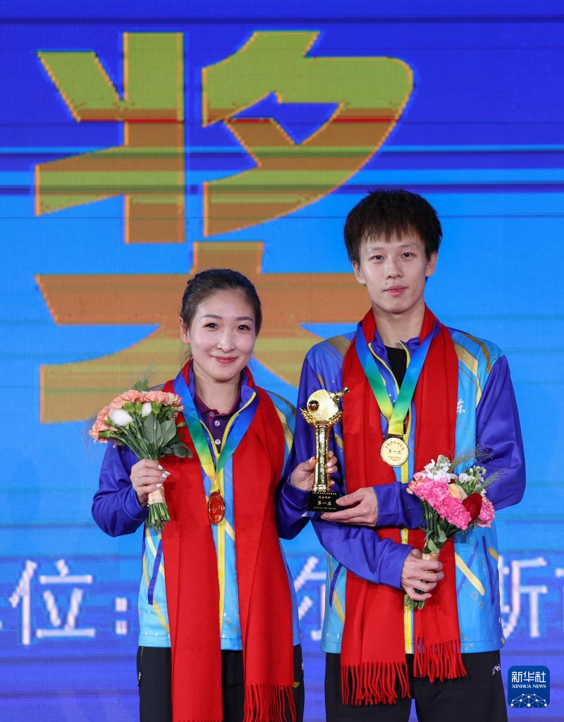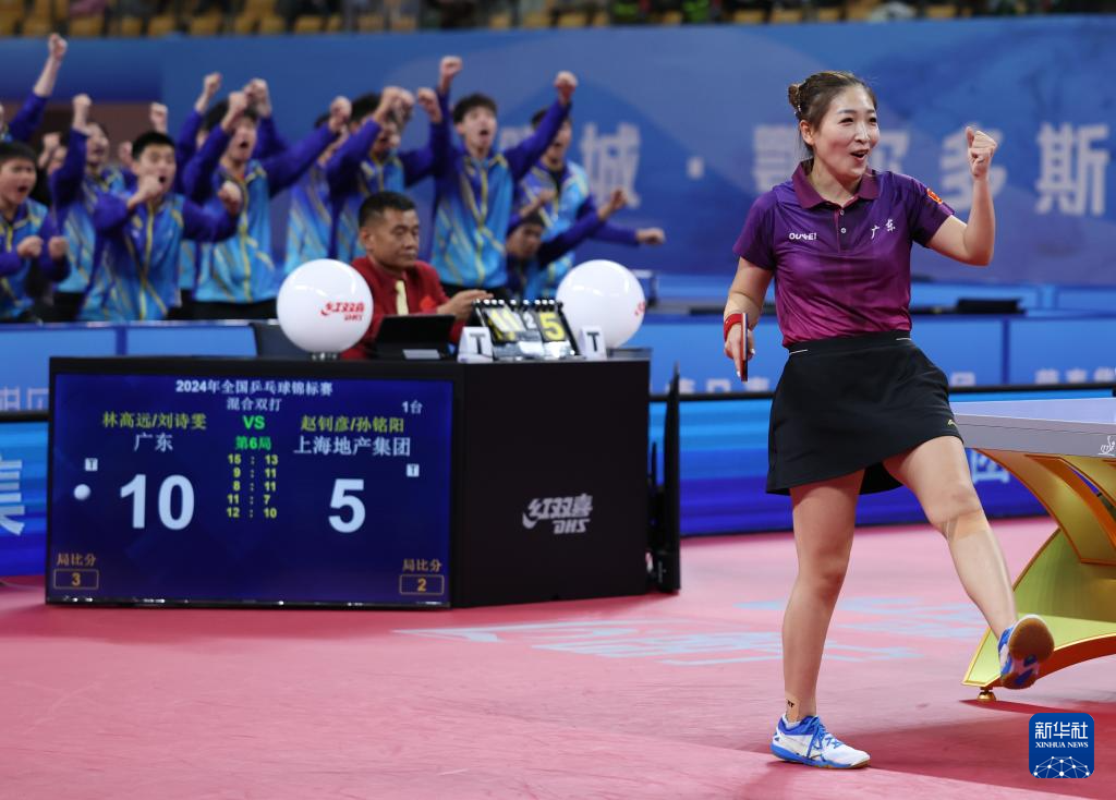 当日,在内蒙古鄂尔多斯举办的2024年全国乒乓球锦标赛混双决赛中,广东队组合林高远/刘诗雯4比2战胜上海地产集团队组合赵钊彦/孙铭阳,夺得冠军。