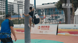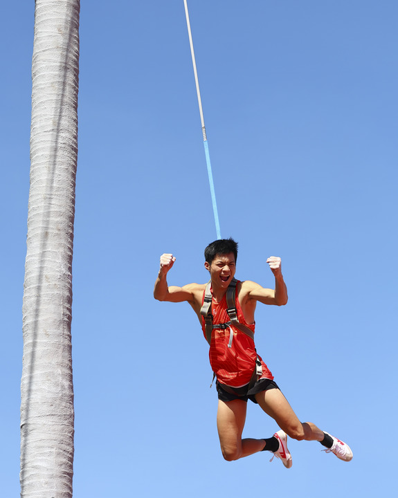 选手在攀椰竞速比赛中。新华社记者 杨植森 摄