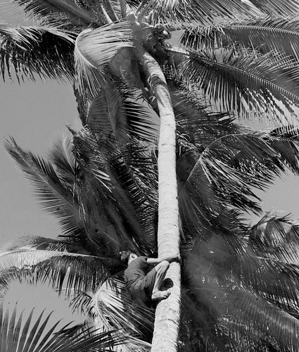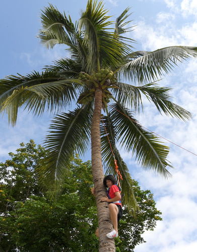 徒手爬树摘椰子是
