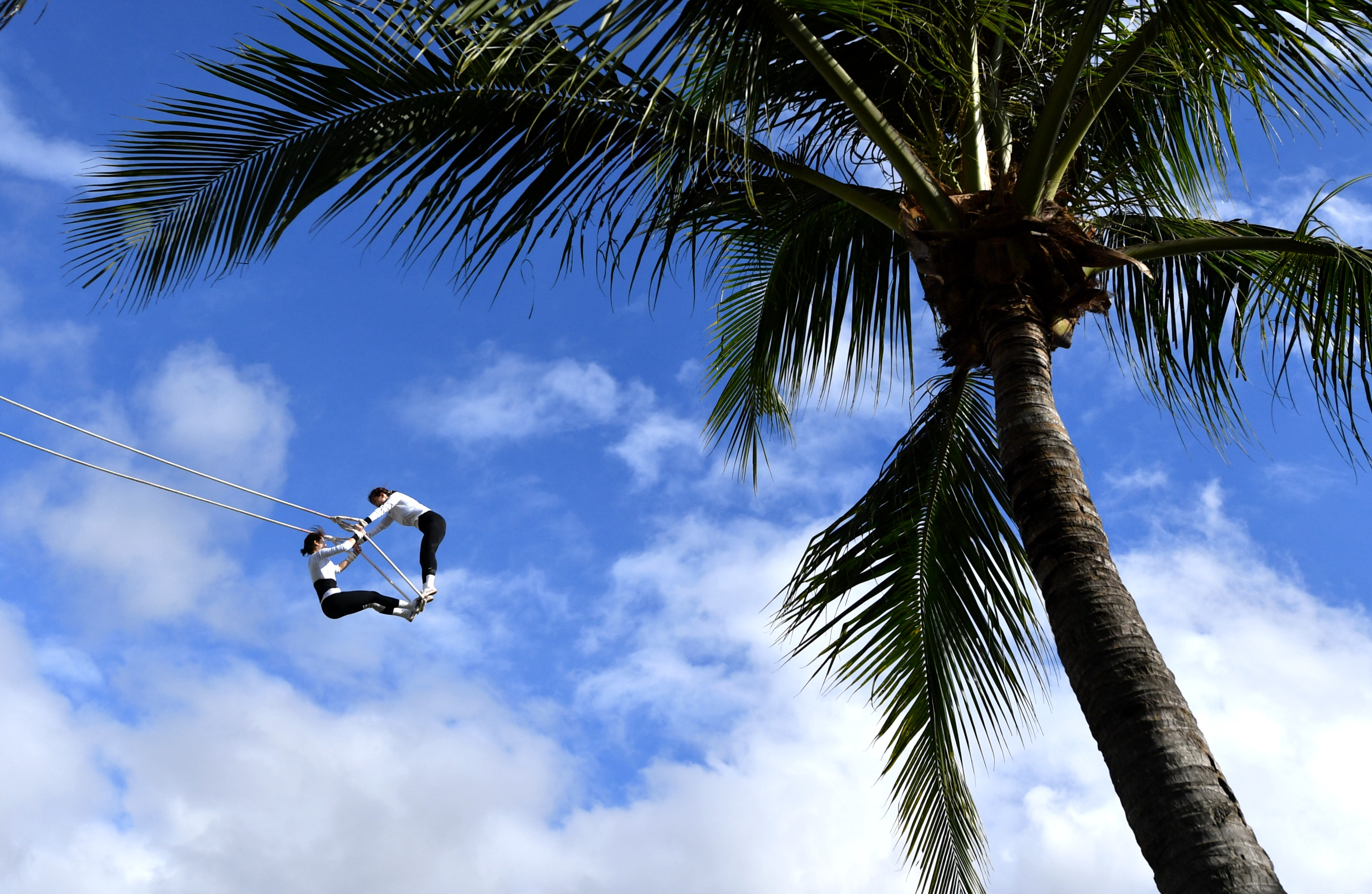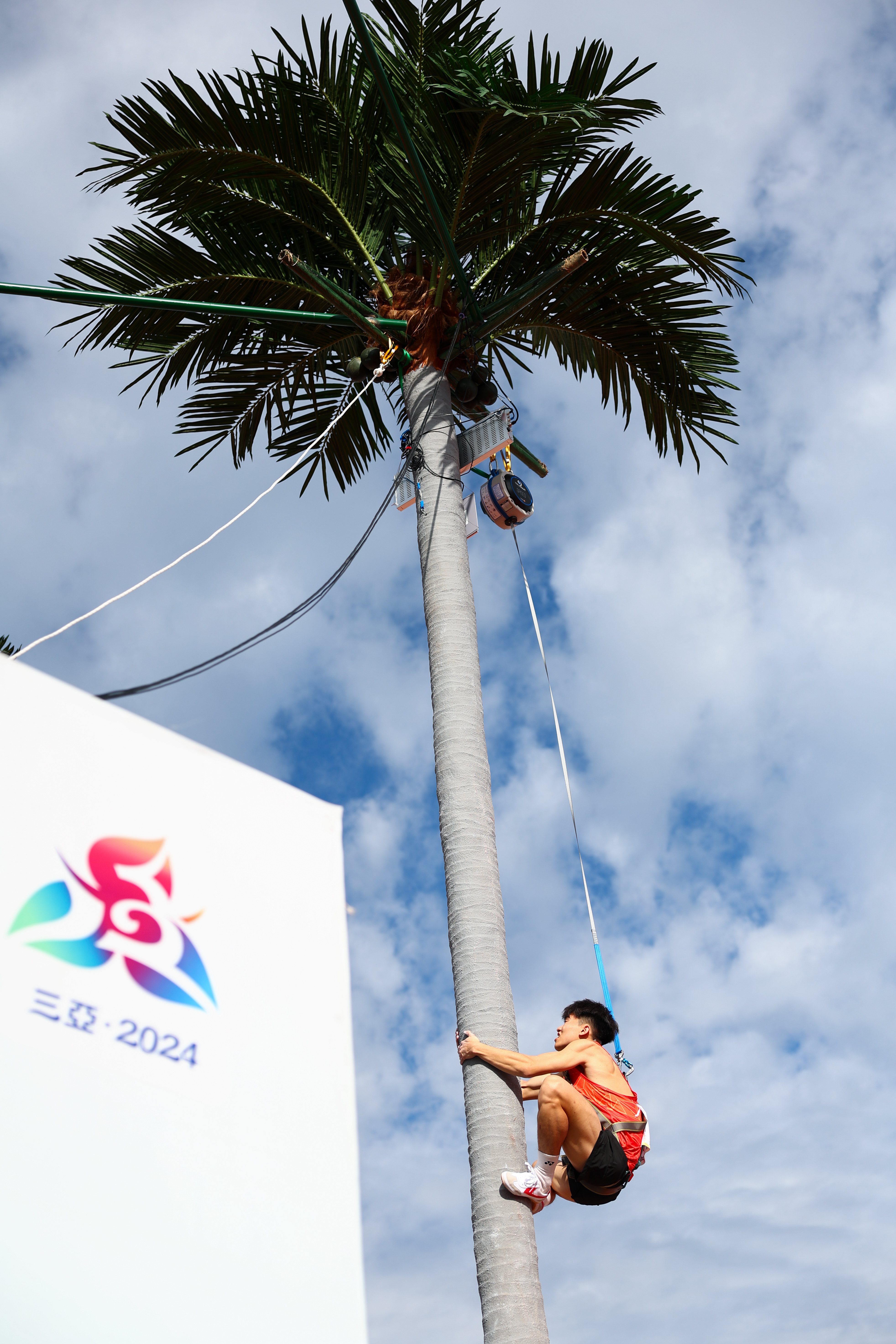 攀椰竞速就源于海南各民族群众爬树摘椰子的生活劳作场景
