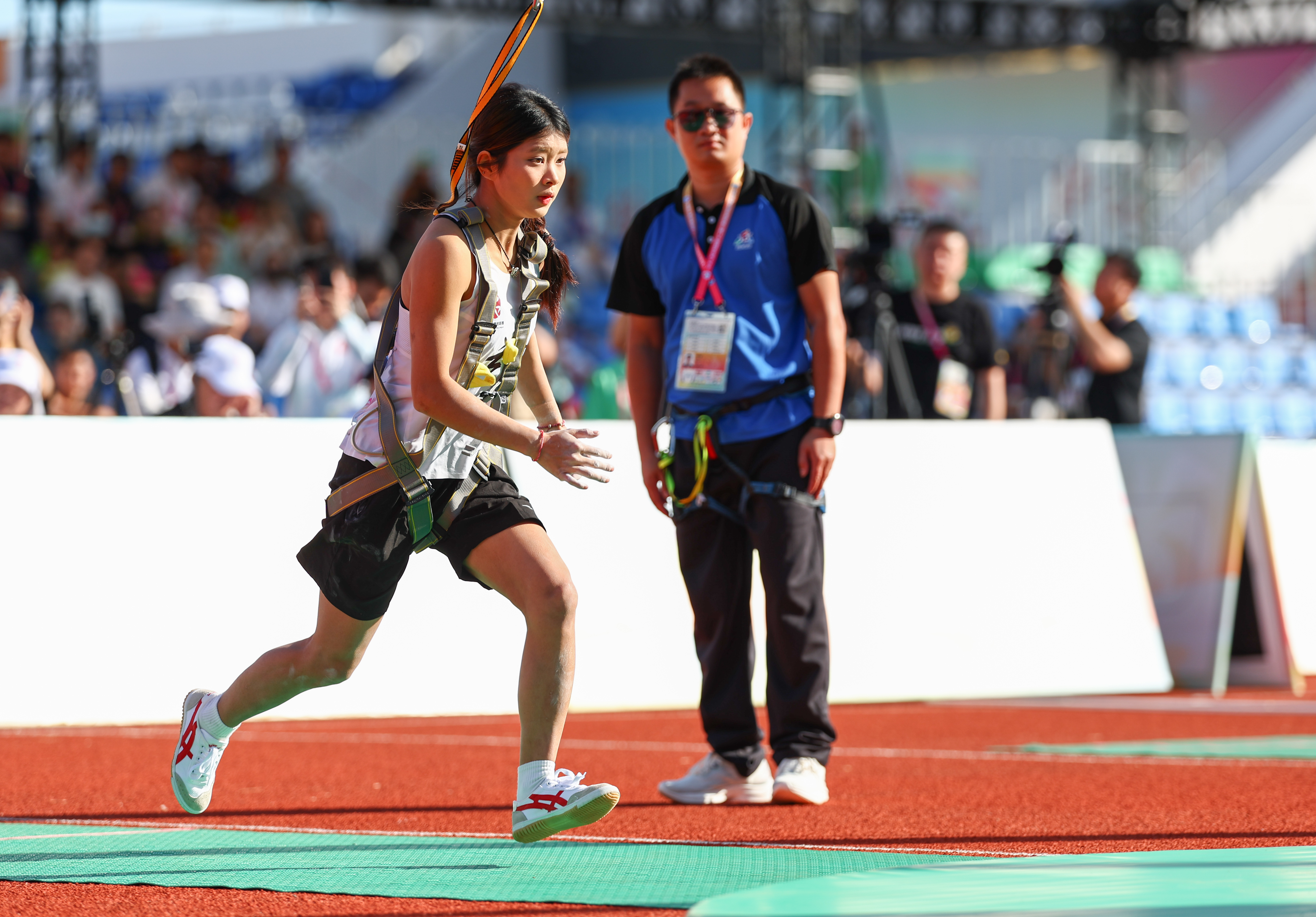 11月24日,云南队选手白玉美(左)在比赛中助跑。新华社记者 杨植森 摄