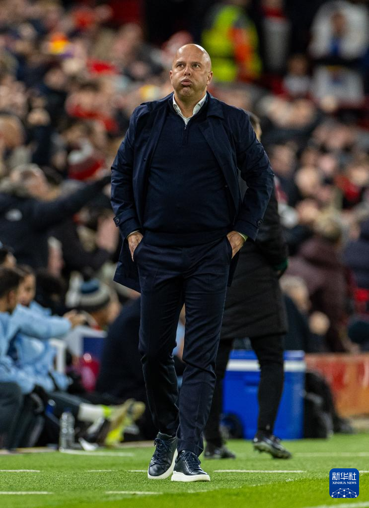 11月27日,利物浦队主教练斯洛特在场边观战。