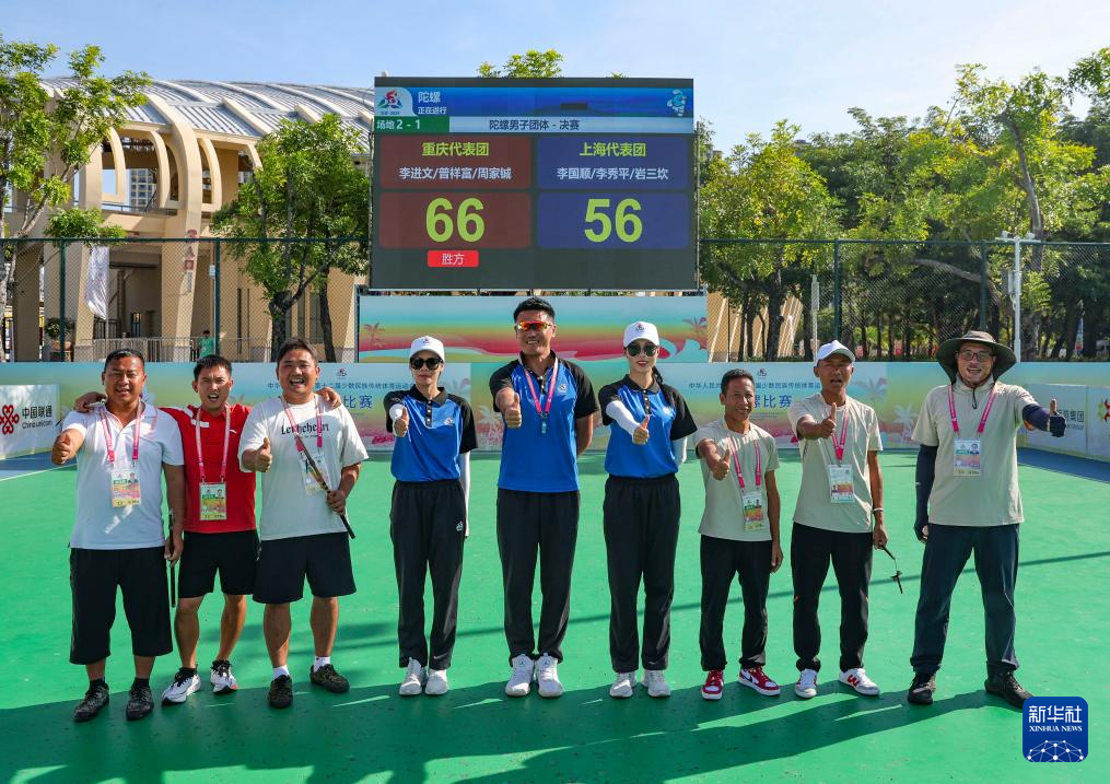 当日,在海南三亚举行的第十二届全国少数民族传统体育运动会陀螺男子团体决赛中,重庆队66比56战胜上海队,获得一等奖。