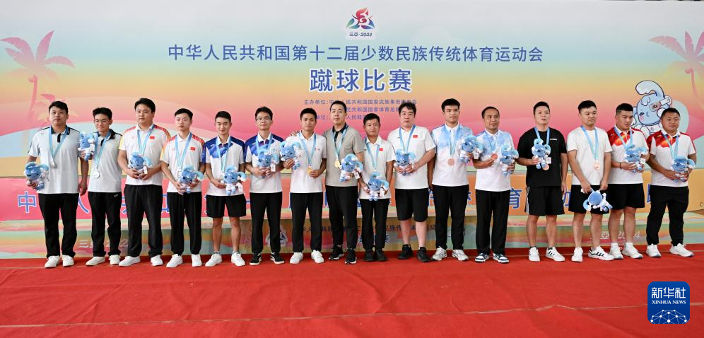 当日,在海南三亚举行的第十二届全国少数民族传统体育运动会蹴球男子双蹴决赛中,贵州队组合胡家卫/胡光吉100比92战胜云南队组合张彦吉/张永福,获得一等奖。