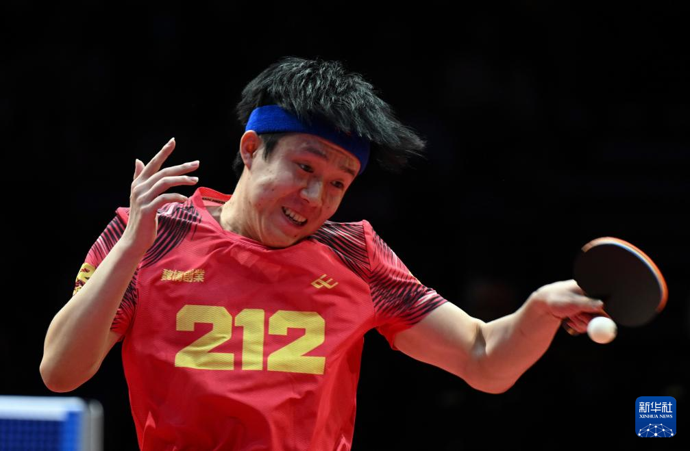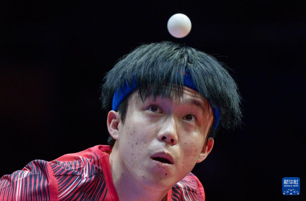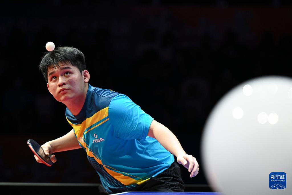 1月1日,黄石基地·华新队选手林诗栋在单打比赛中回球。他2比3不敌山东魏桥·向尚运动队选手王楚钦。