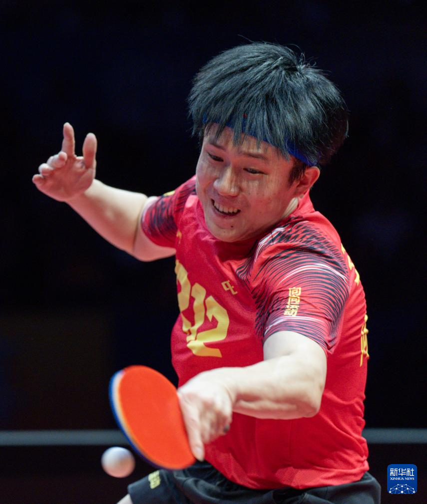 1月1日,山东魏桥·向尚运动队选手梁靖崑在单打比赛中。他3比1战胜黄石基地·华新队选手薛飞。