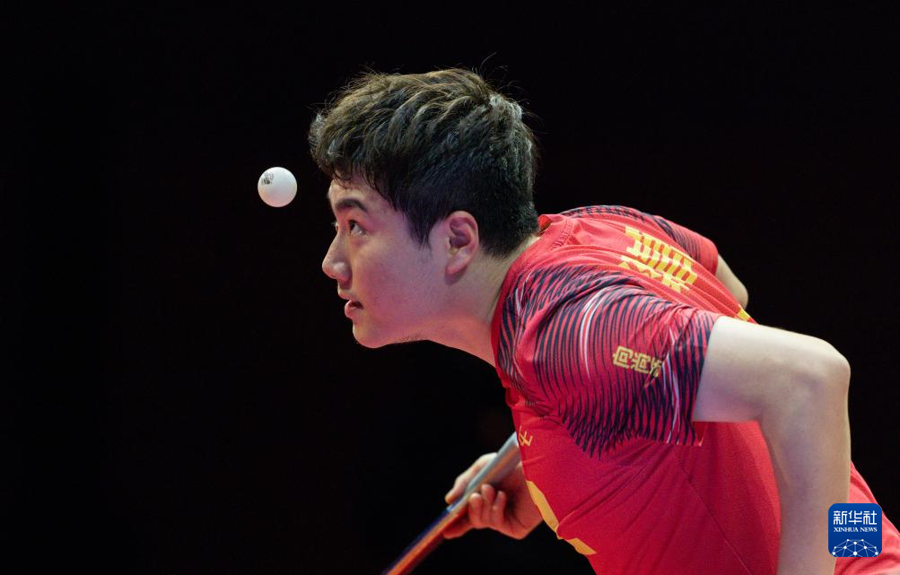 1月1日,山东魏桥·向尚运动队选手王楚钦在单打比赛中回球。他3比2战胜黄石基地·华新队选手林诗栋。