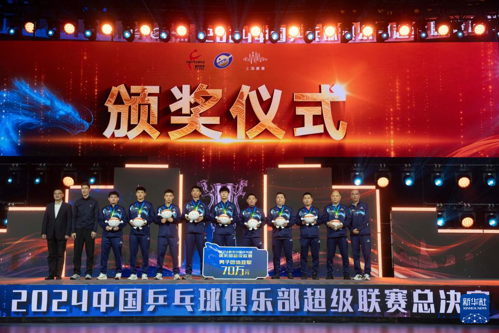 当日,在上海举行的2024赛季中国乒乓球俱乐部超级联赛总决赛男子团体决赛中,山东魏桥·向尚运动队3比0战胜黄石基地·华新队,获得冠军。