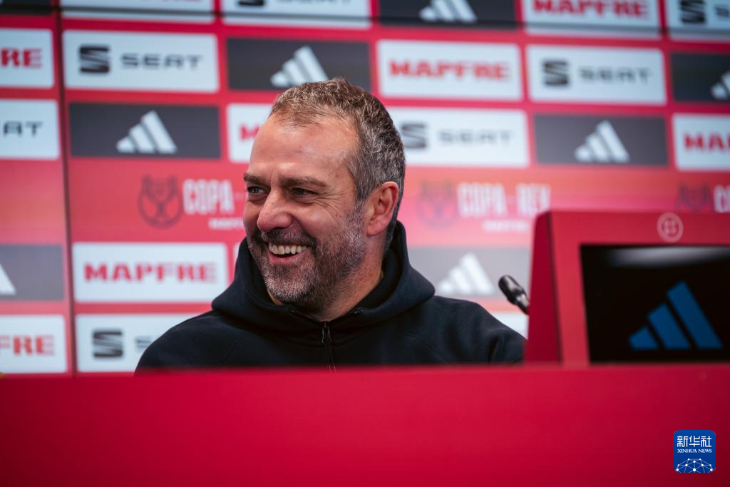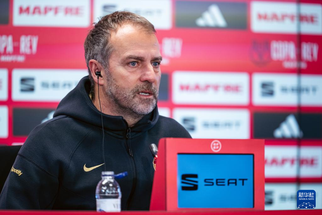 1月14日,巴塞罗那队主教练汉斯·弗利克在新闻发布会上。