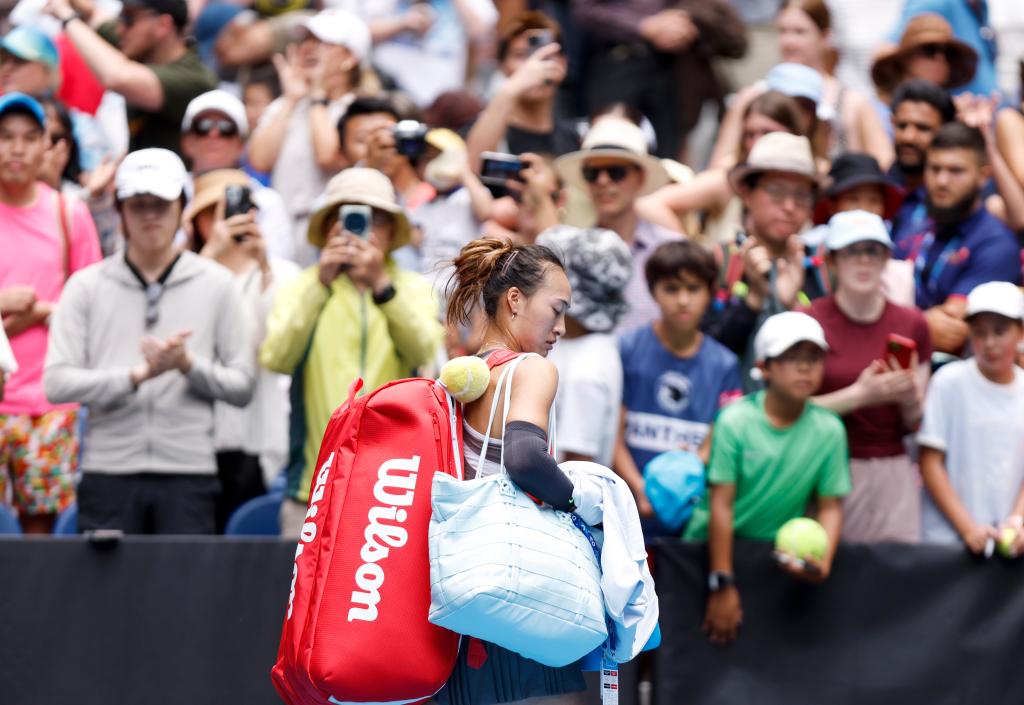 1月15日,郑钦文在比赛后离场。新华社记者 马平 摄