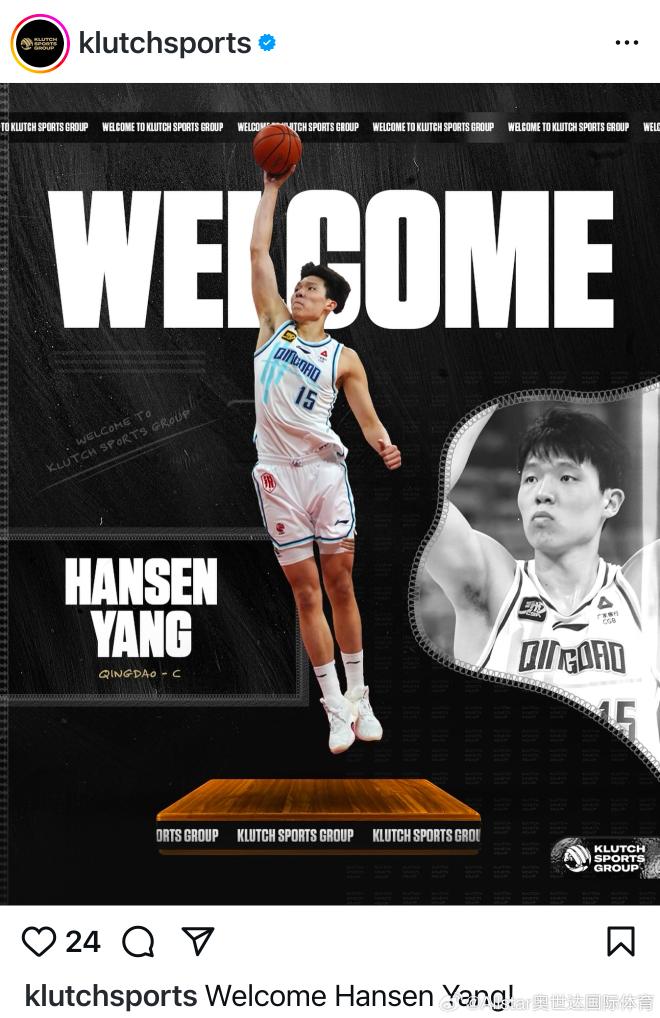 杨瀚森的国内经纪团队16日宣布,杨瀚森已与美方经纪公司Klutch体育集团签约。该集团由知名篮球经纪人里奇·保罗创建,代理过勒布朗·詹姆斯、安东尼·戴维斯、达龙·福克斯等多位NBA球星。