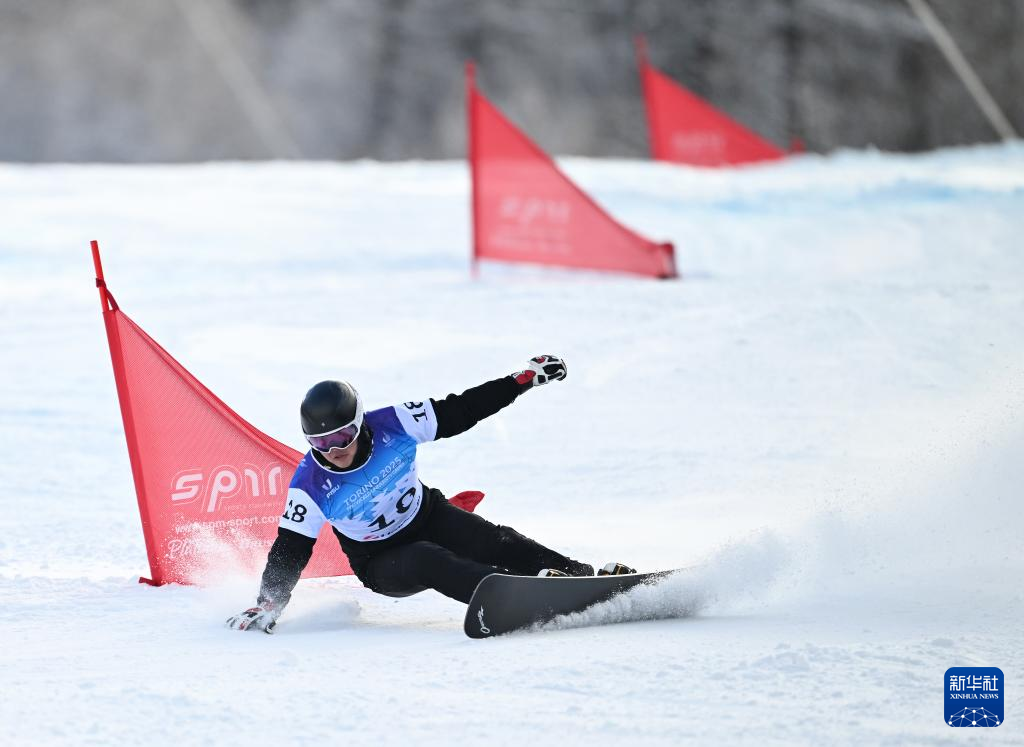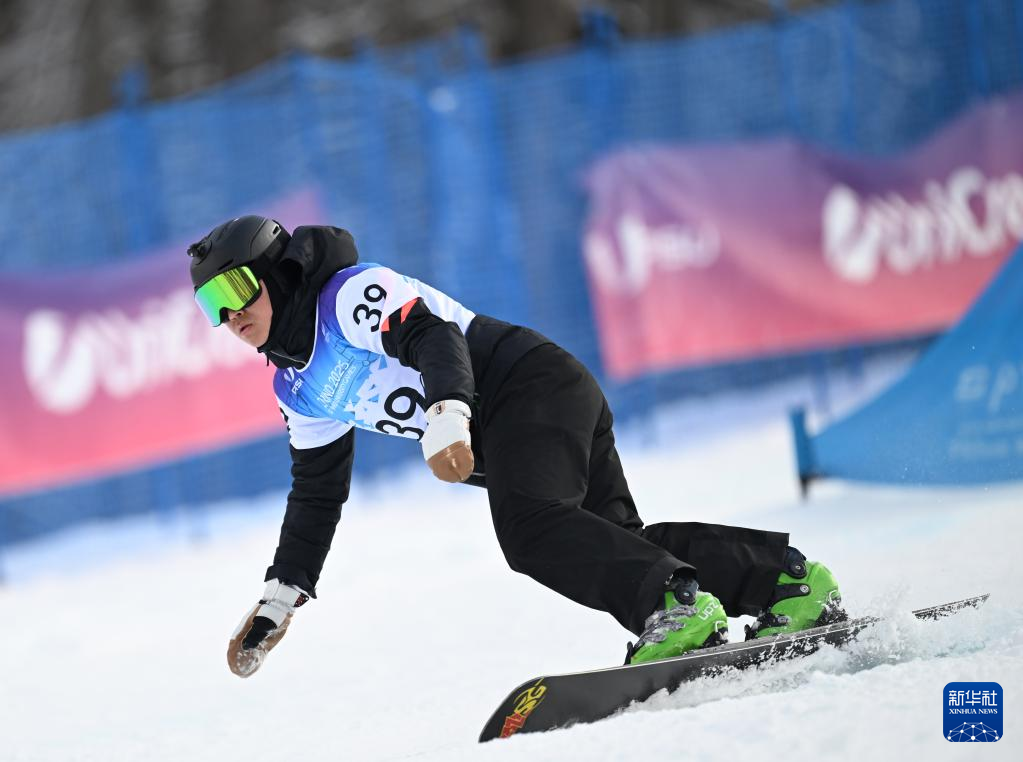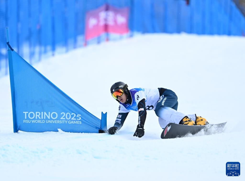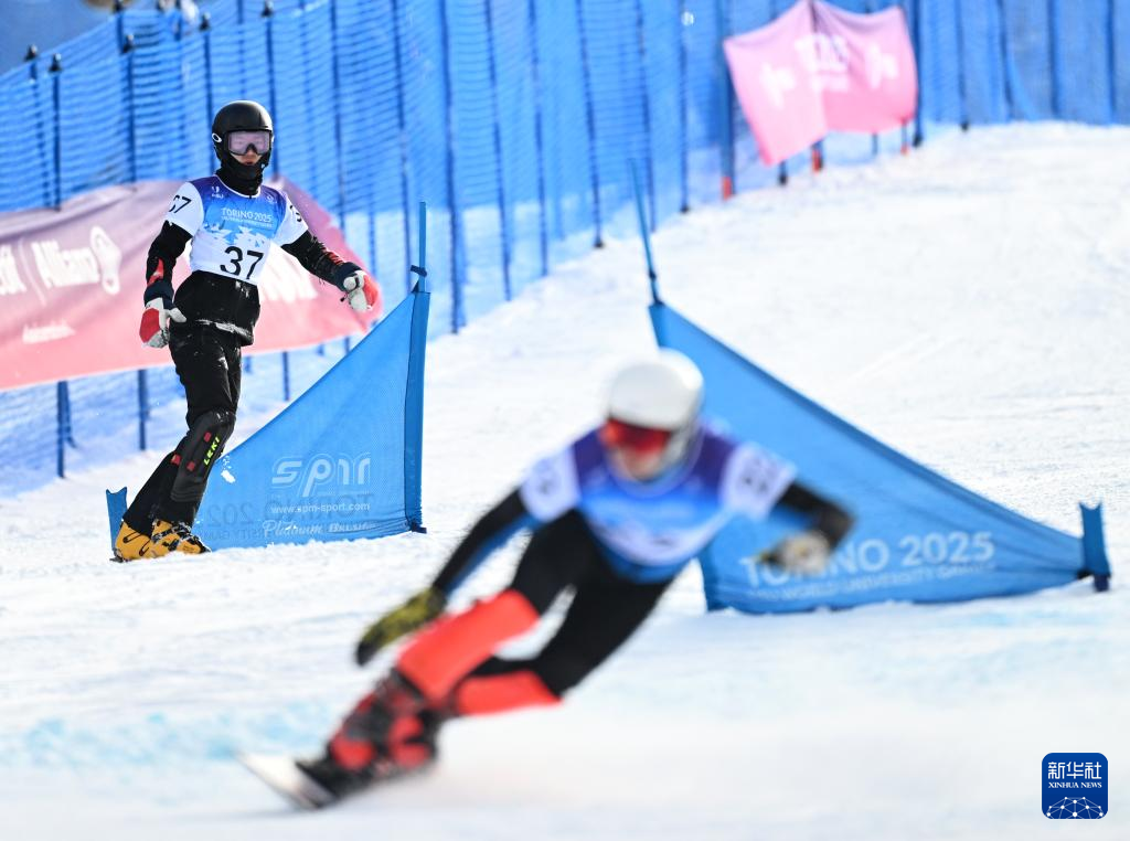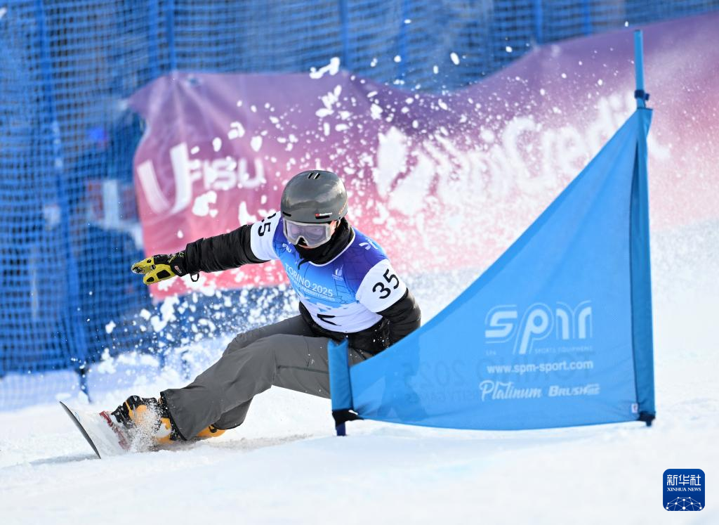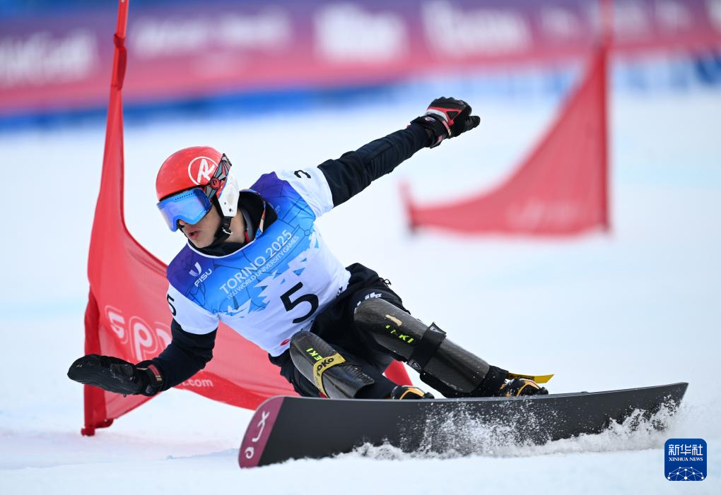 当日,2025年世界大学生冬季运动会单板滑雪男子平行大回转比赛在意大利巴多内基亚举行。