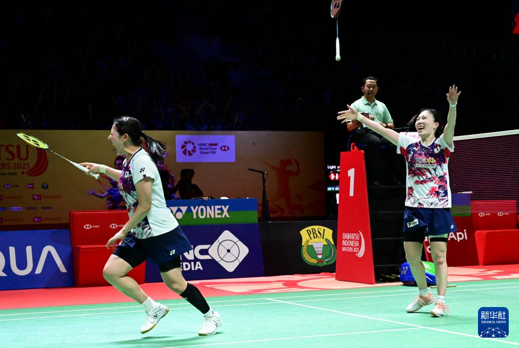1月26日,金慧贞(右)/孔熙容庆祝夺冠。新华社发(祖卡南摄)