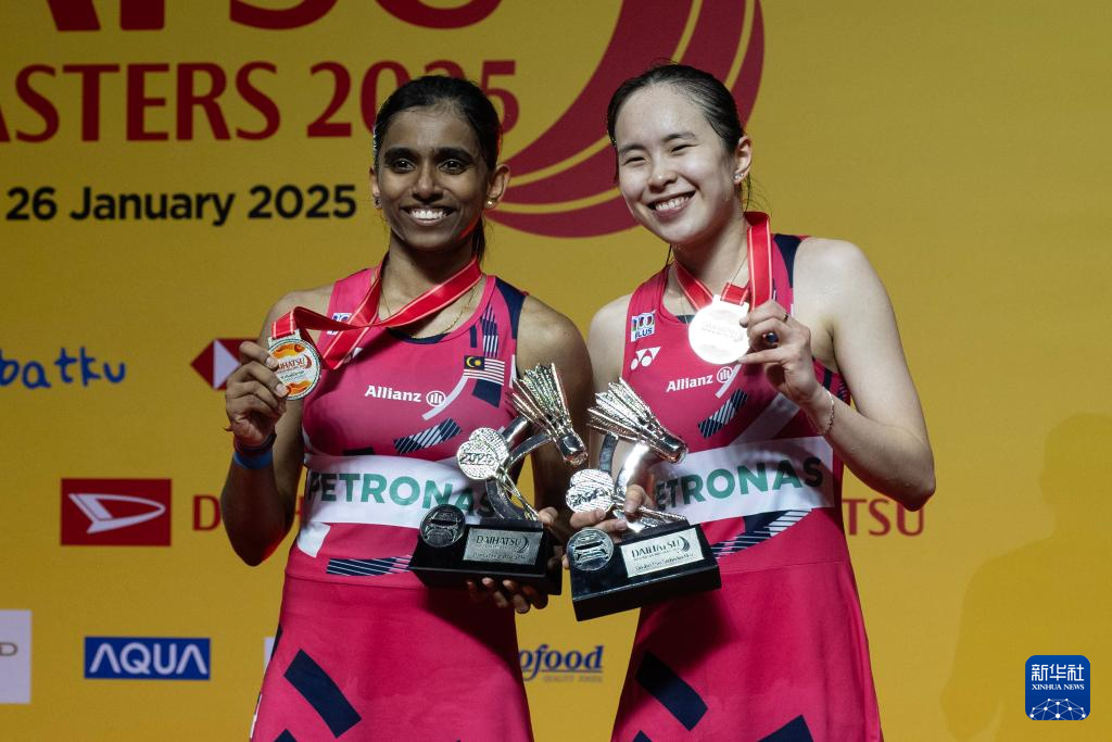 1月26日,亚军马来西亚组合陈康乐(右)/蒂娜在颁奖仪式上合影。新华社发(维里摄)