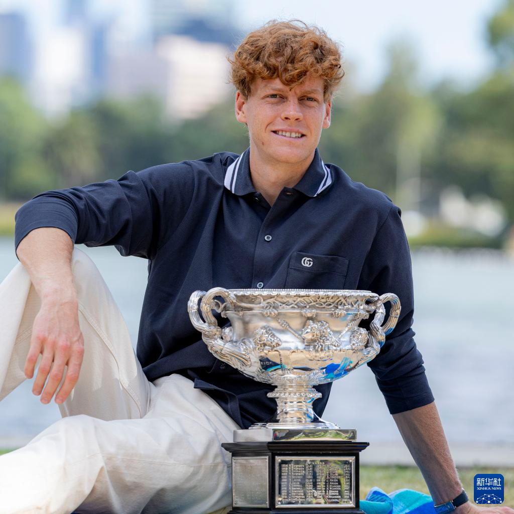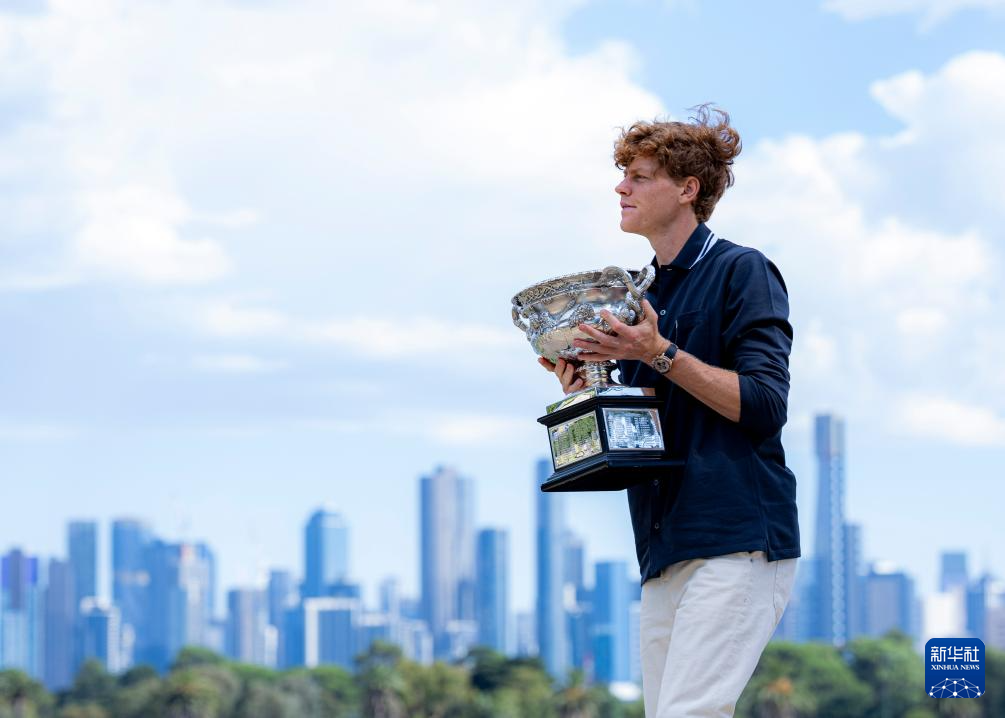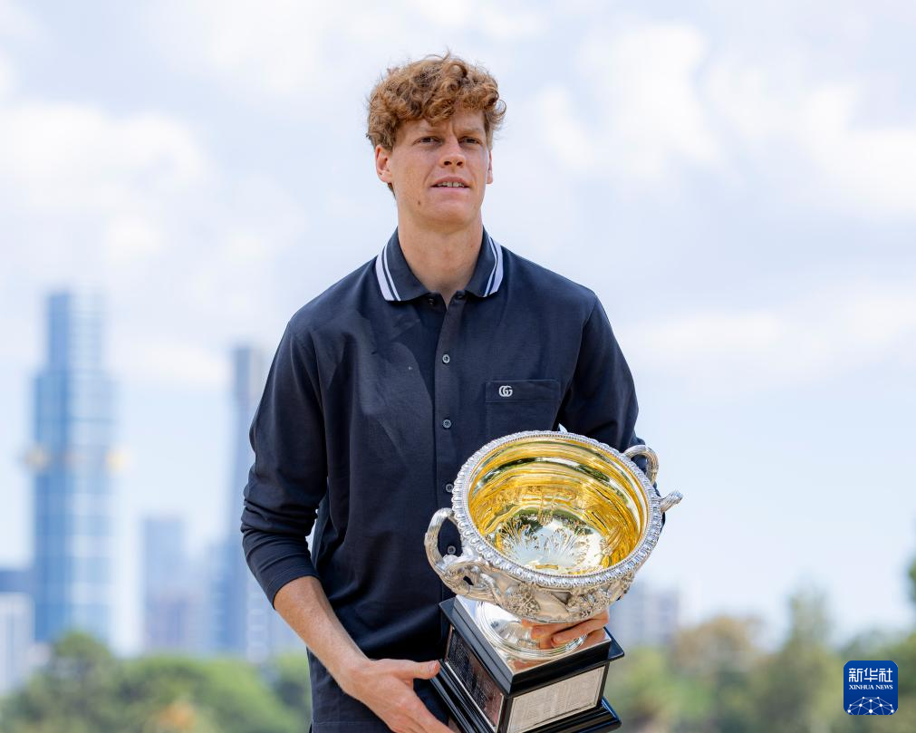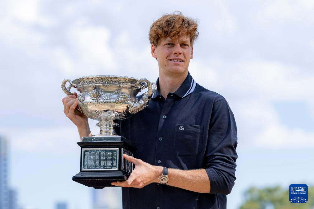 1月27日,辛纳展示奖杯。新华社发(储晨摄)