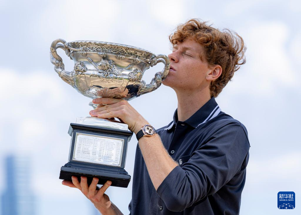 1月27日,辛纳亲吻奖杯。新华社发(储晨摄)