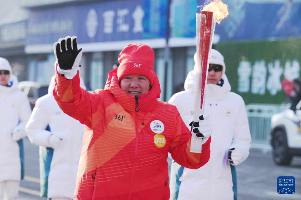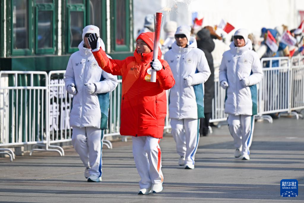 2月3日,火炬手康辉在传递火炬。新华社记者 陈振海 摄