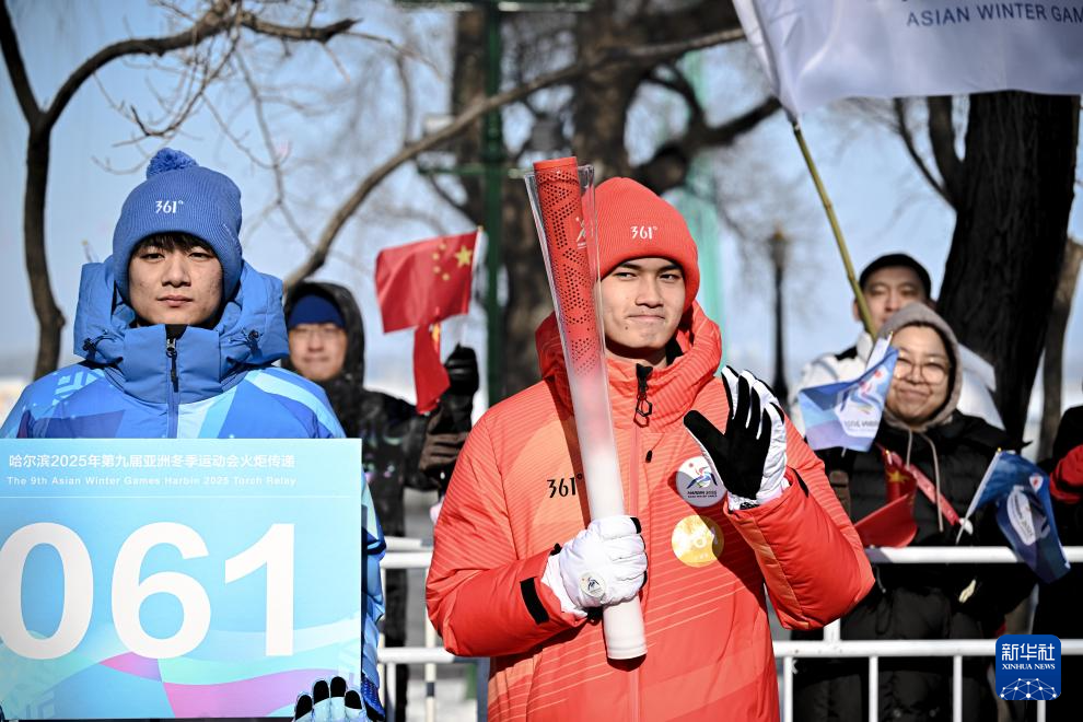 新华社哈尔滨2月3日电(记者王君宝、李春宇)松花江水穿城而过,亚冬圣火熠熠生辉。第九届亚冬会火炬传递活动3日在哈尔滨举行。