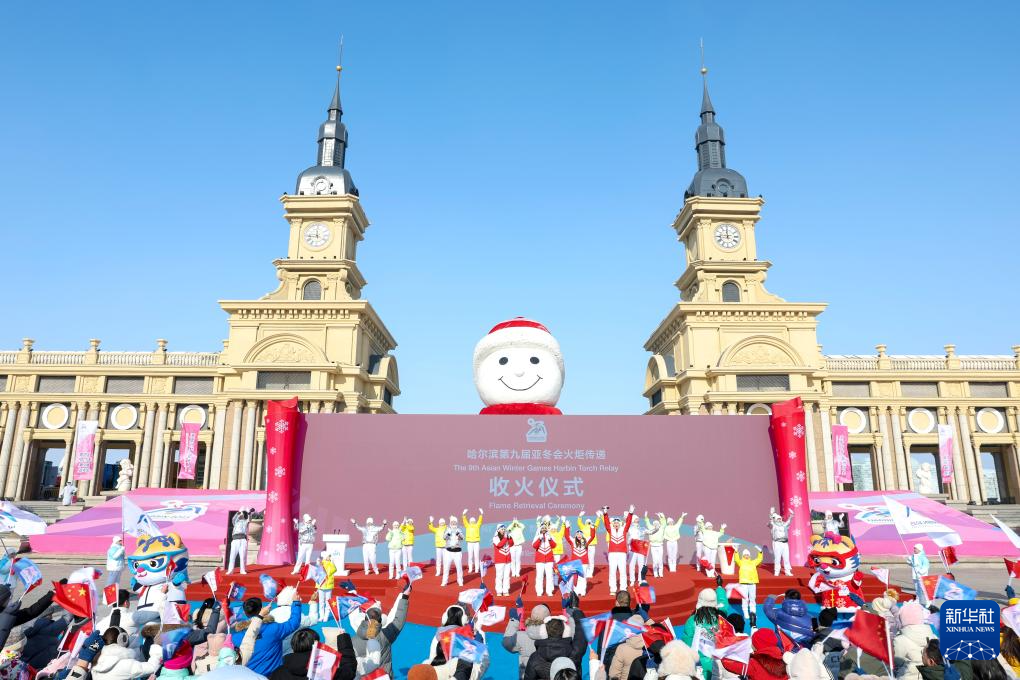 这是2月3日拍摄的第九届亚冬会火炬传递收火仪式现场。新华社记者 张涛 摄