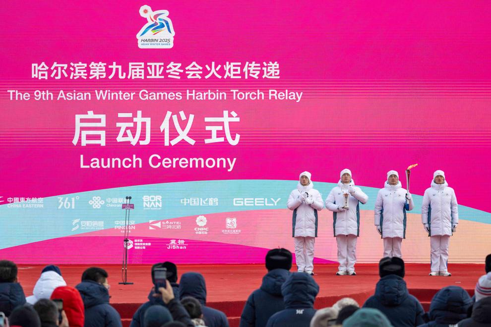 这是2月3日在哈尔滨市中华巴洛克历史文化保护街区拍摄的第九届亚冬会火炬传递启动仪式现场。新华社记者 谢剑飞 摄