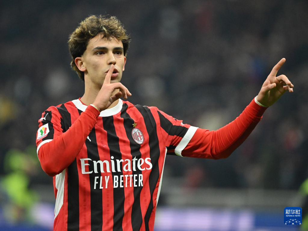 2月5日,AC米兰队球员菲利克斯庆祝进球。