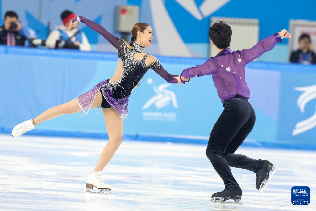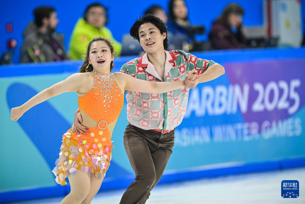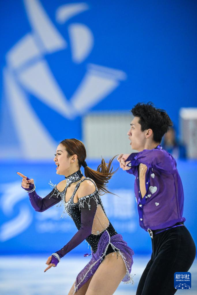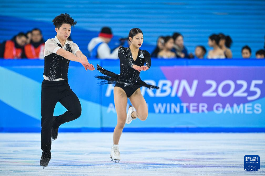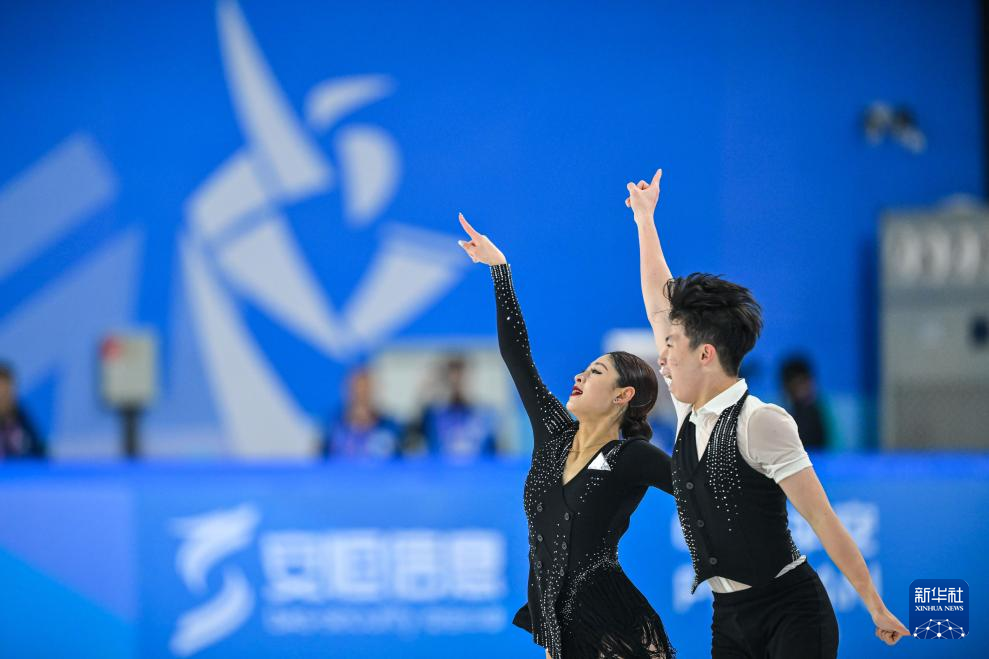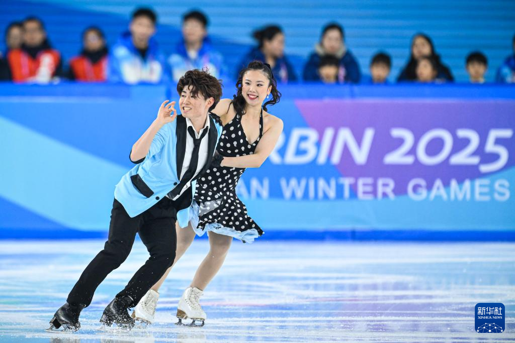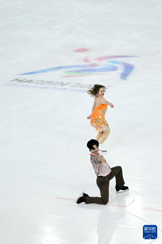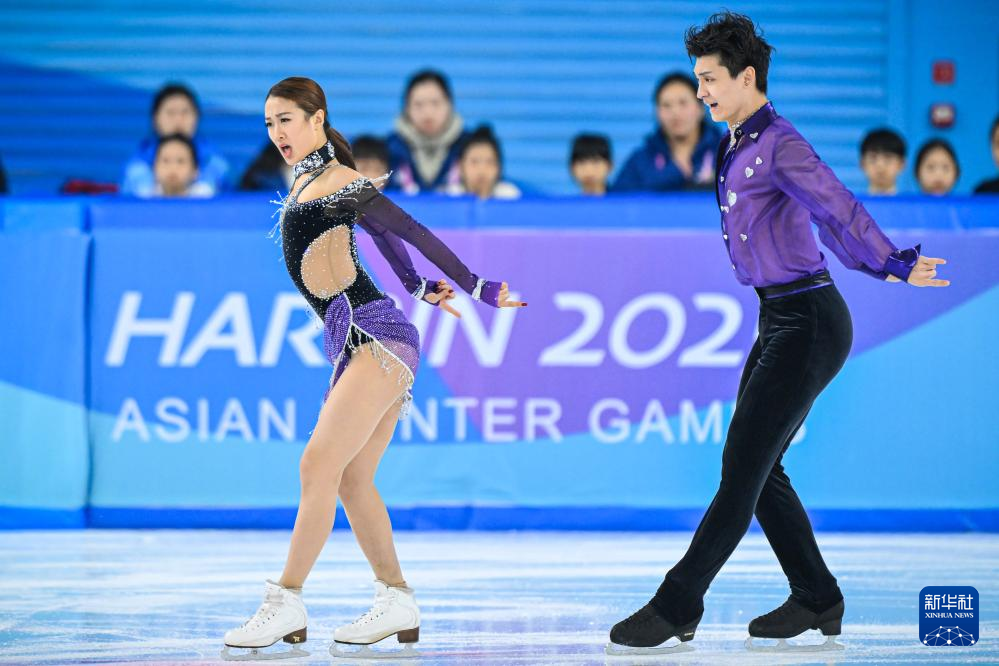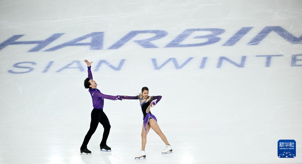 当日,第九届亚冬会花样滑冰冰上舞蹈韵律舞比赛在哈尔滨举行。