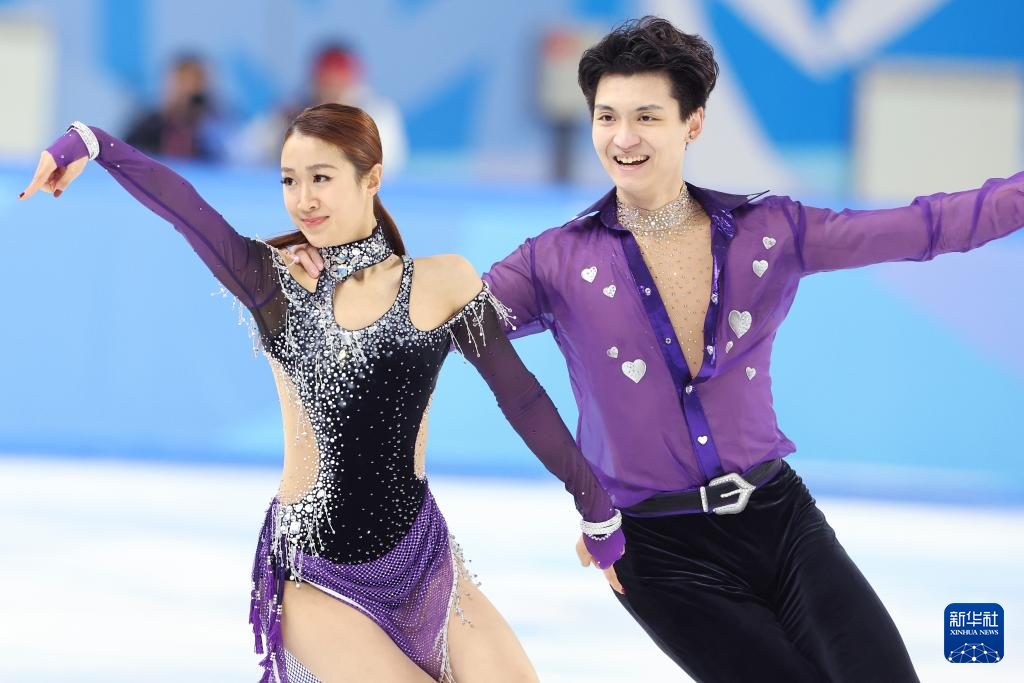 2月11日,中国组合肖紫兮(右)/何凌昊在比赛中。最终,他们以62.64分的成绩暂列第四。