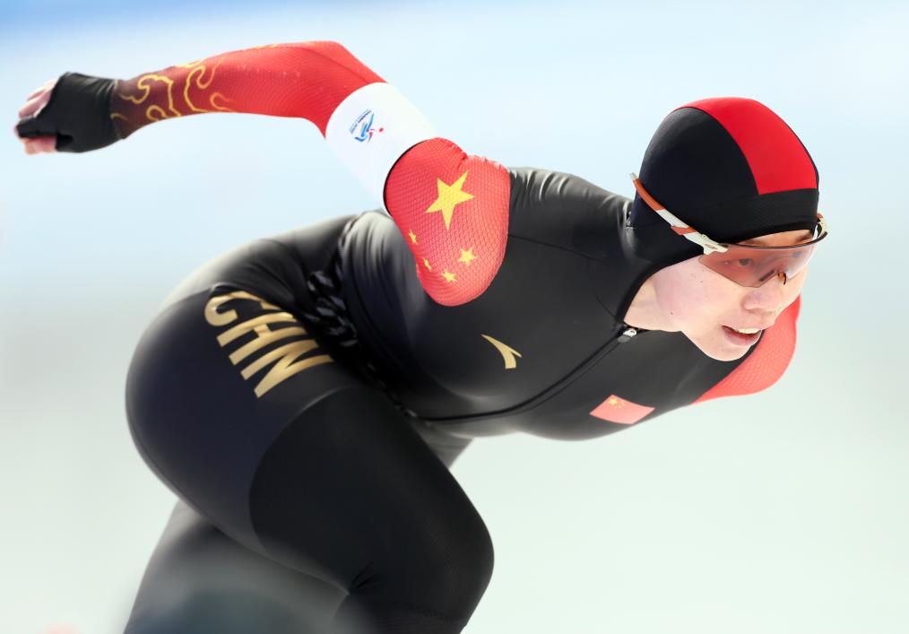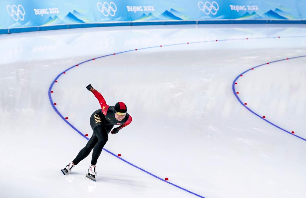 2022年2月17日,中国选手殷琦在北京冬奥会速度滑冰女子1000米决赛中。新华社记者 王菲 摄