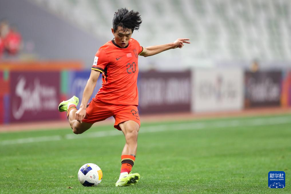 2月18日,中国队球员孙康博在比赛中传中。新华社记者 李旭伦 摄