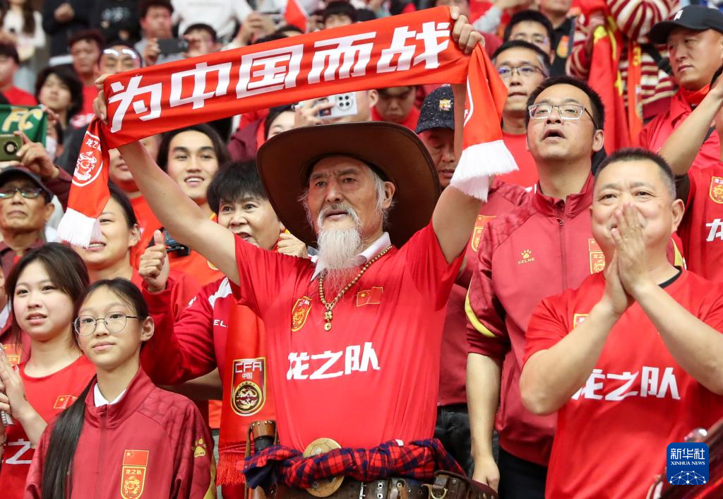 2月18日,中国队球迷在比赛现场助威。新华社记者 李旭伦 摄
