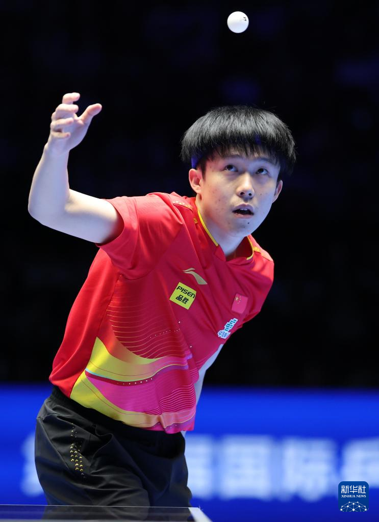 2月23日,王楚钦在比赛中回球。